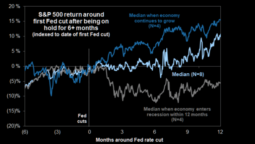 S&P 500 Performance – Fed Restarting Cuts – With or Without Recession